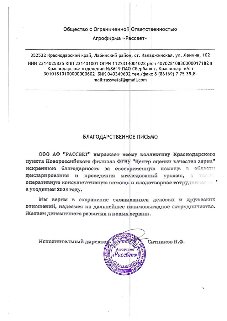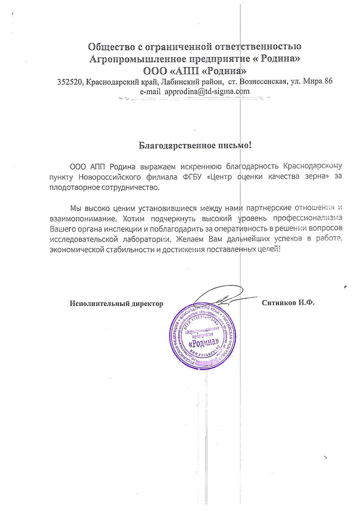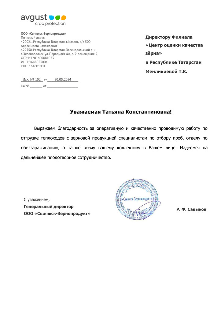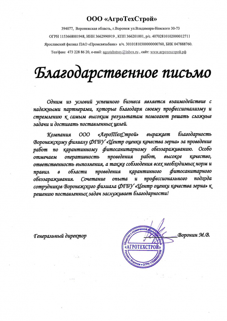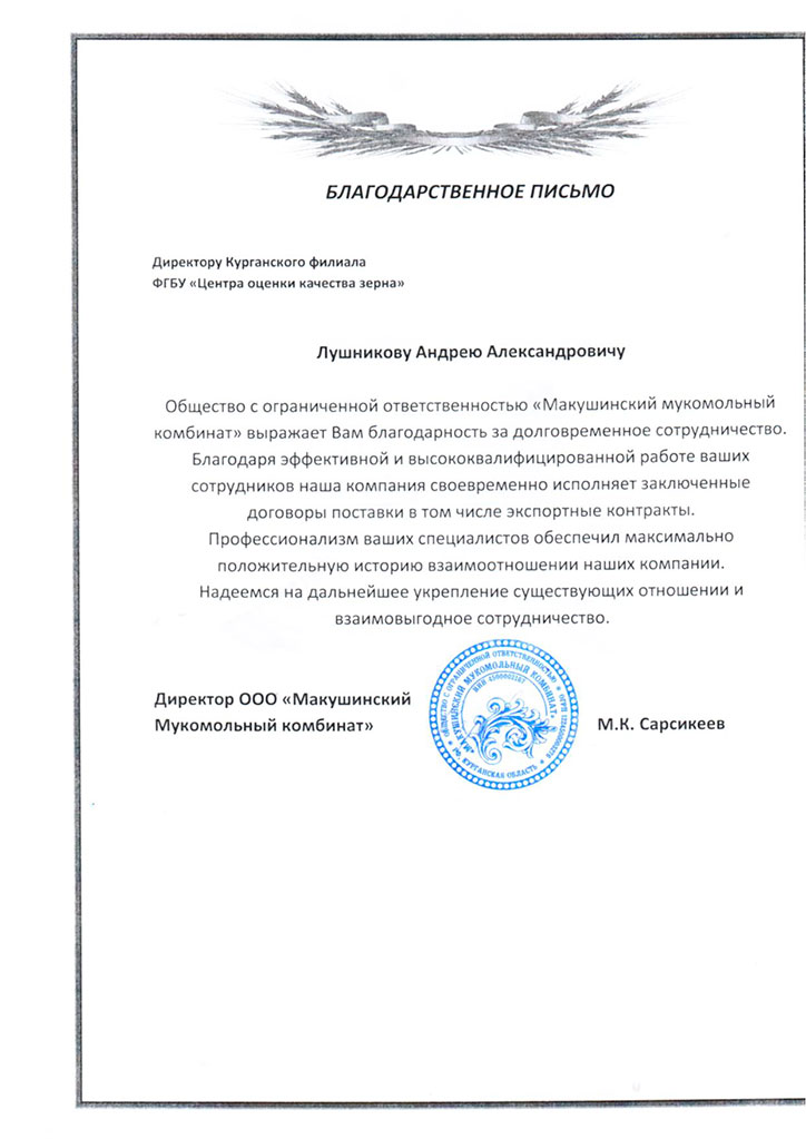 Благодарственные письма