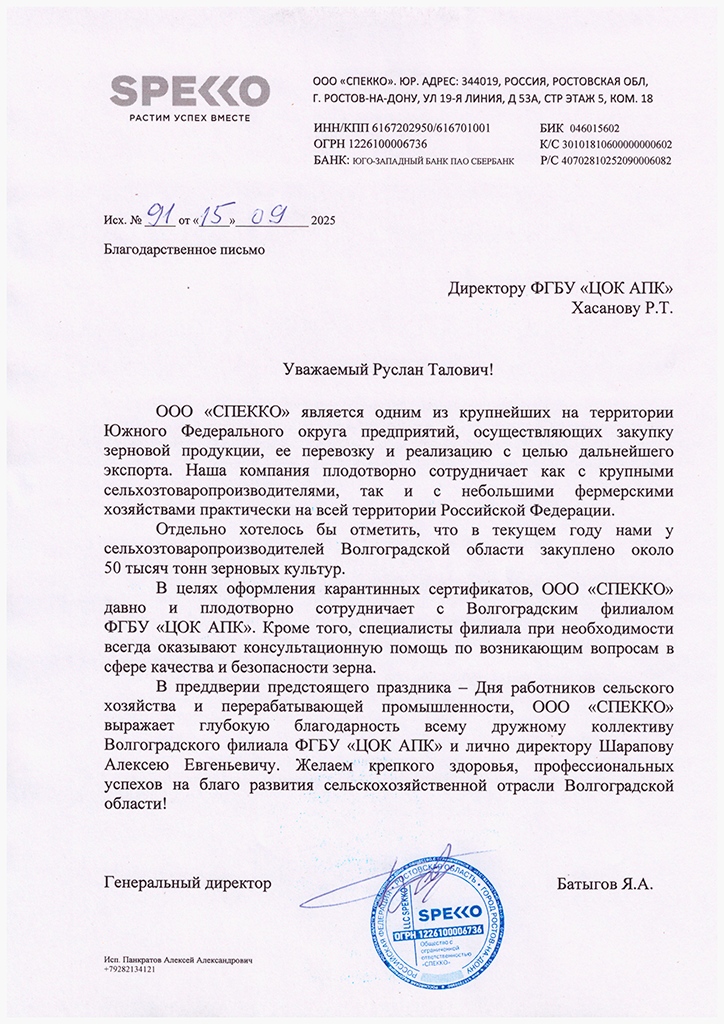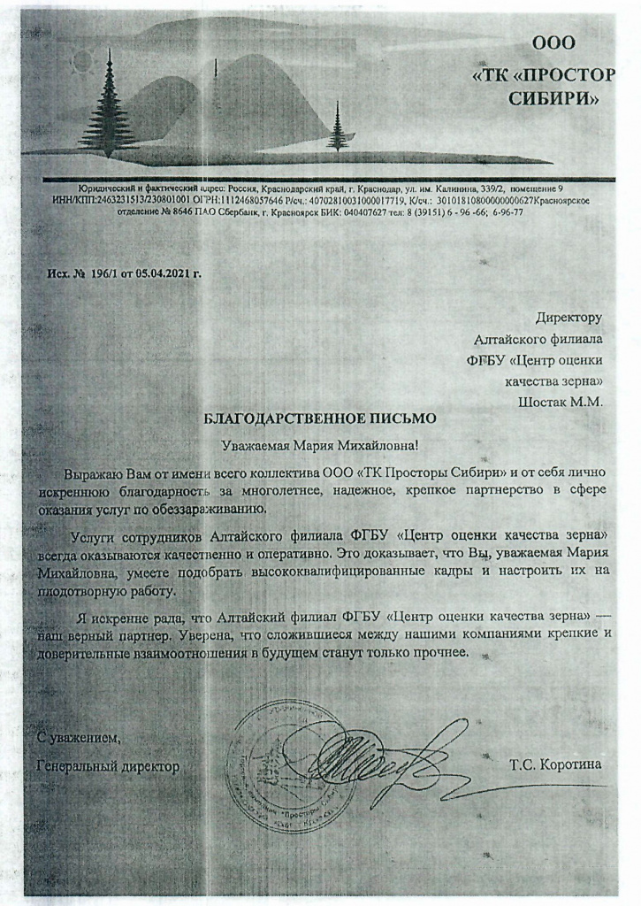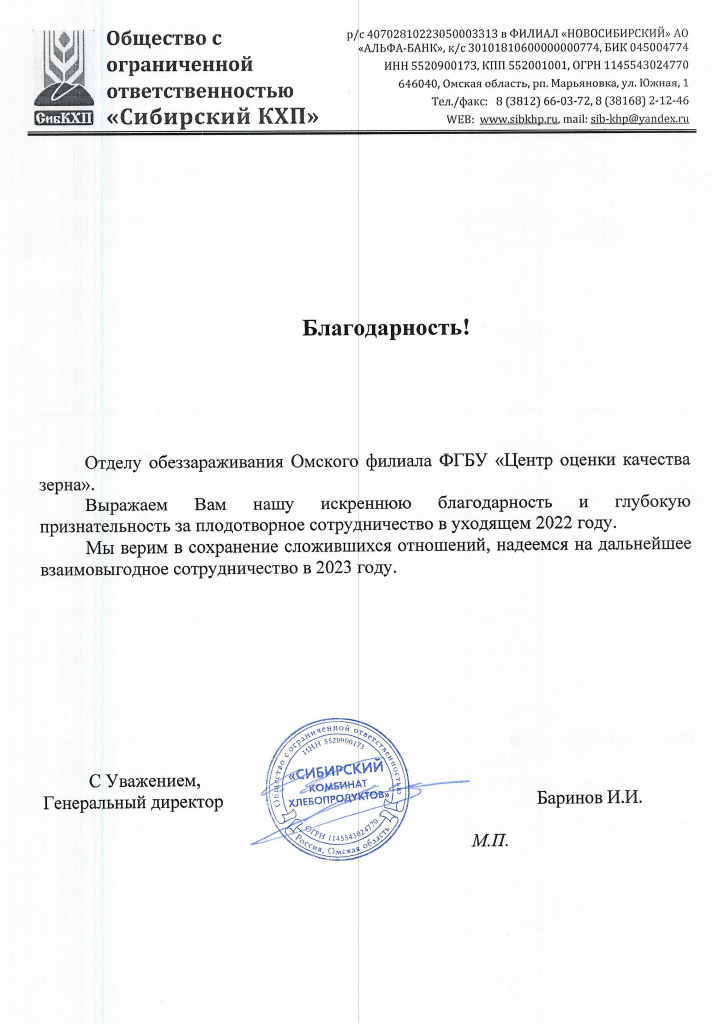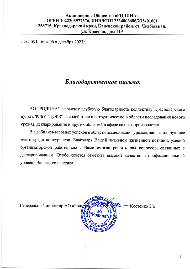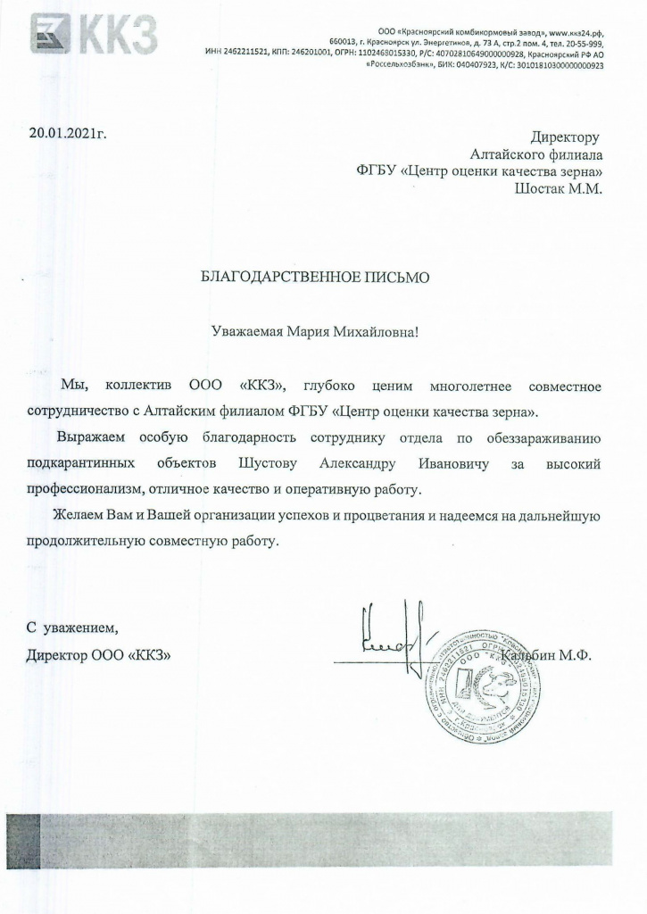Благодарственные письма