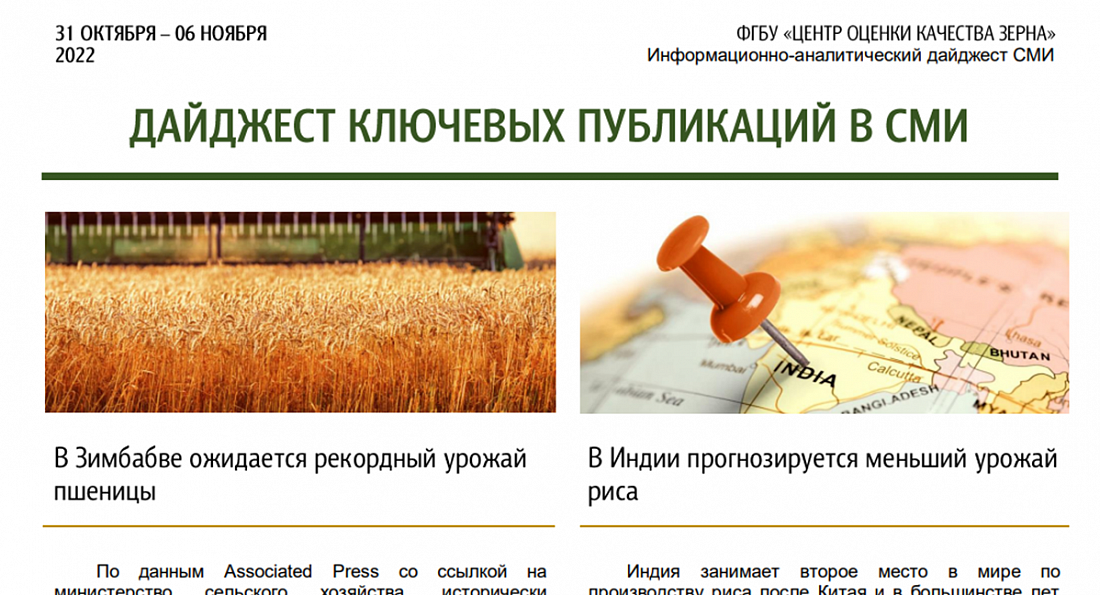Дайджест ключевых публикаций в международных СМИ 31 октября-06 ноября 2022 (PDF)