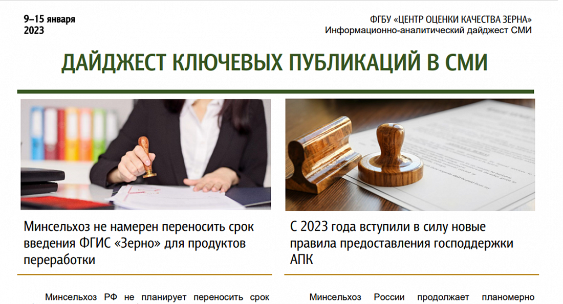Дайджест ключевых публикаций в СМИ 09-15 января 2023