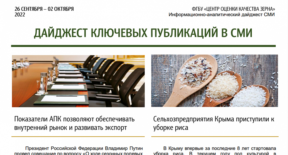 Дайджест ключевых публикаций в СМИ 25 сентября – 02 октября 2022