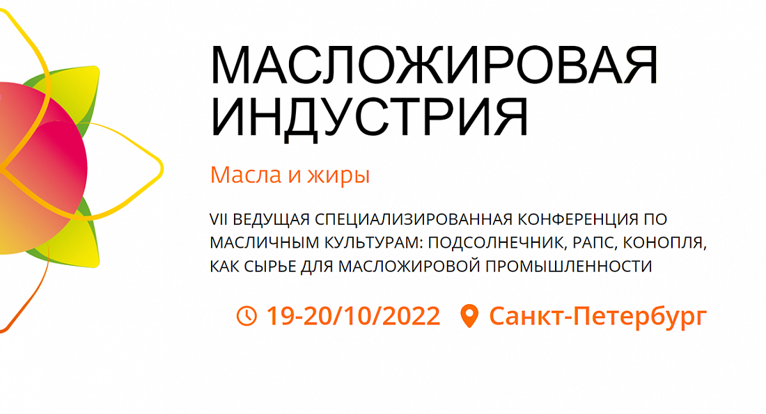 В Санкт-Петербурге 19-20 октября 2022 года пройдет VII Международная специализированная конференция «Масложировая индустрия. Масла и жиры». Мероприятие является площадкой для обсуждения передового отраслевого опыта и выработки оптимальной стратегии. Цель конференции — помочь предприятиям отрасли увеличить выручку, минимизировать расходы и найти пути дальнейшего развития в новых экономических условиях.