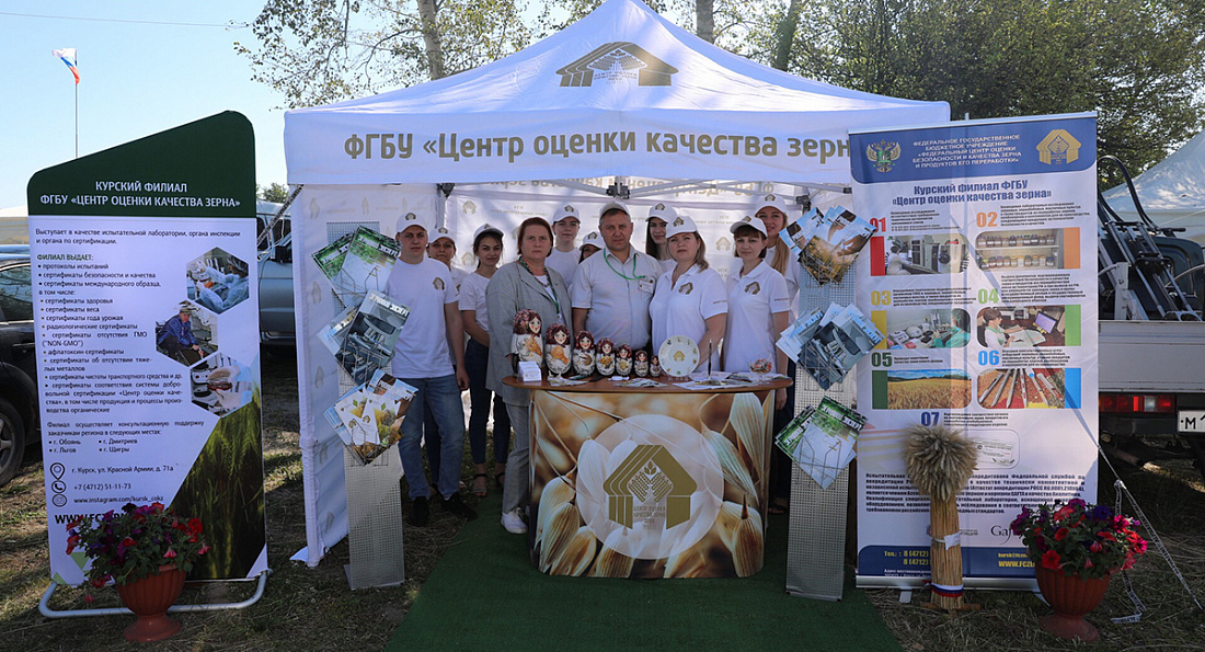 Сотрудники Курского филиала ФГБУ «Центр оценки качества зерна» представили информационные стенды на двух участках: в поле наряду с сельскохозяйственной техникой и другими федеральными службами области, а также в выставочном павильоне сельскохозяйственной, пищевой и перерабатывающей промышленности, на которых все посетители смогли ознакомиться с оказываемыми услугами и работой Учреждения в целом, а также получить квалифицированную консультацию специалистов по всем интересующим вопросам. Отметим, что стенды Курского филиала посетил председатель комитета агропромышленного комплекса Курской области Иван Музалёв.