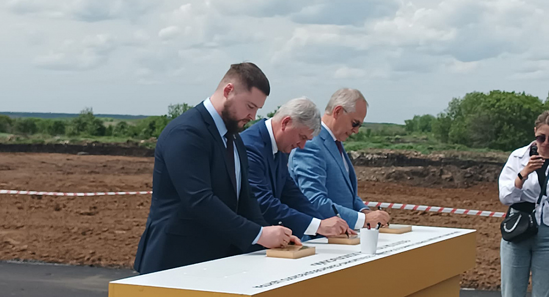 Первый камень в строительство заложили директор Департамента селекции и семеноводства Министерства сельского хозяйства России Иван Музалев, губернатор Воронежской области Александр Гусев и акционер ГК «Золотой початок» Сергей Трегуб.