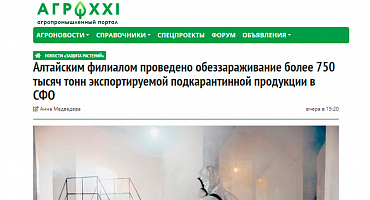 Алтайским филиалом проведено обеззараживание более 750 тысяч тонн экспортируемой подкарантинной продукции в СФО