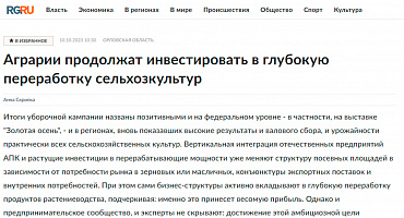 Аграрии продолжат инвестировать в глубокую переработку сельхозкультур