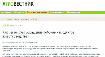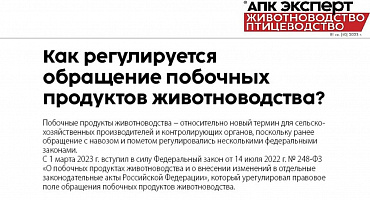 Как регулируется обращение побочных продуктов животноводства?