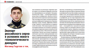 Экспорт российского зерна в условиях нового геополитического дискурса. Магомед Гаургаев о том, к чему может привести сокращение объемов внешней торговли