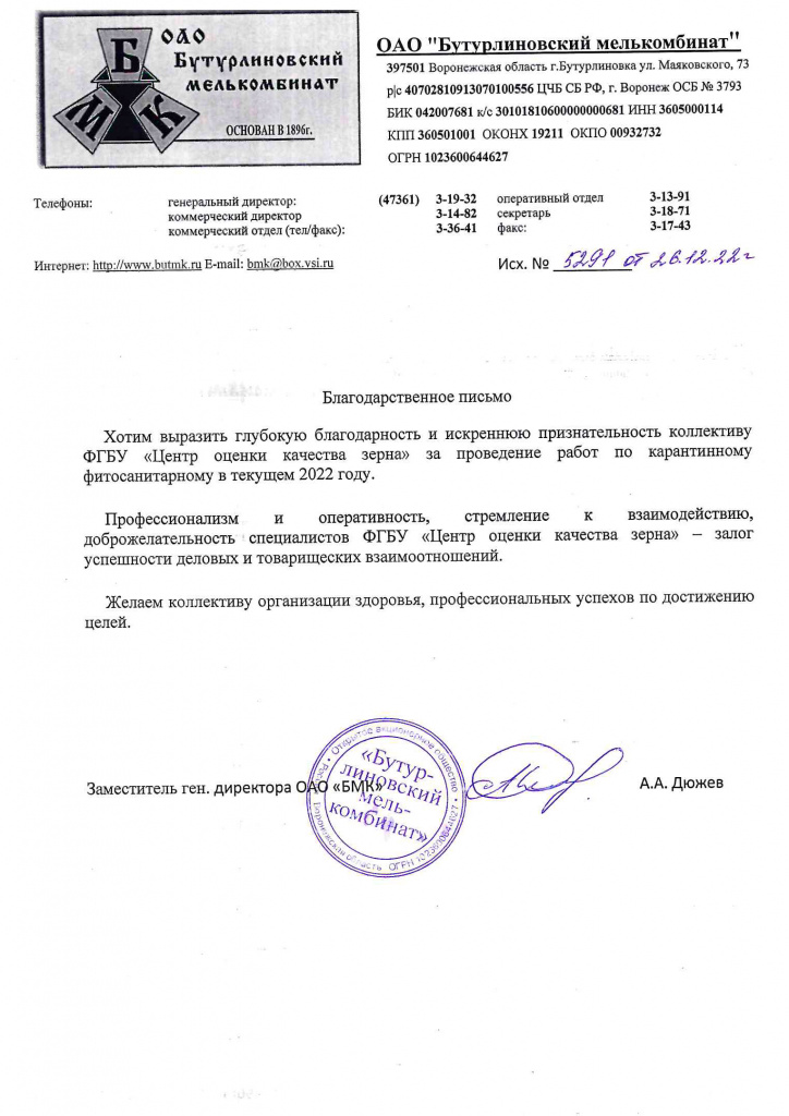 Благодарственные письма