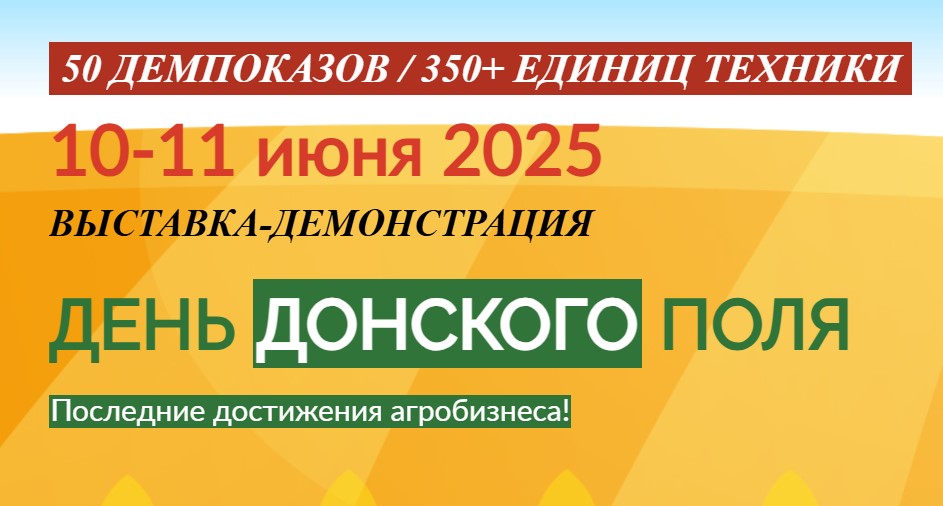 10-11 июня 2025 года в Ростовской области состоится агропромышленная выставка «День Донского поля» – знаковое отраслевое событие, в котором традиционно участвуют более 200 учреждений и компаний региона, тысячи сельхозпроизводителей и жителей области. Донской филиал ФГБУ «ЦОК АПК» традиционно выступает одним из ключевых участников выставки.