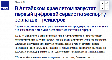 Первый канал: В Алтайском крае летом запустят первый цифровой сервис по экспорту зерна для трейдеров